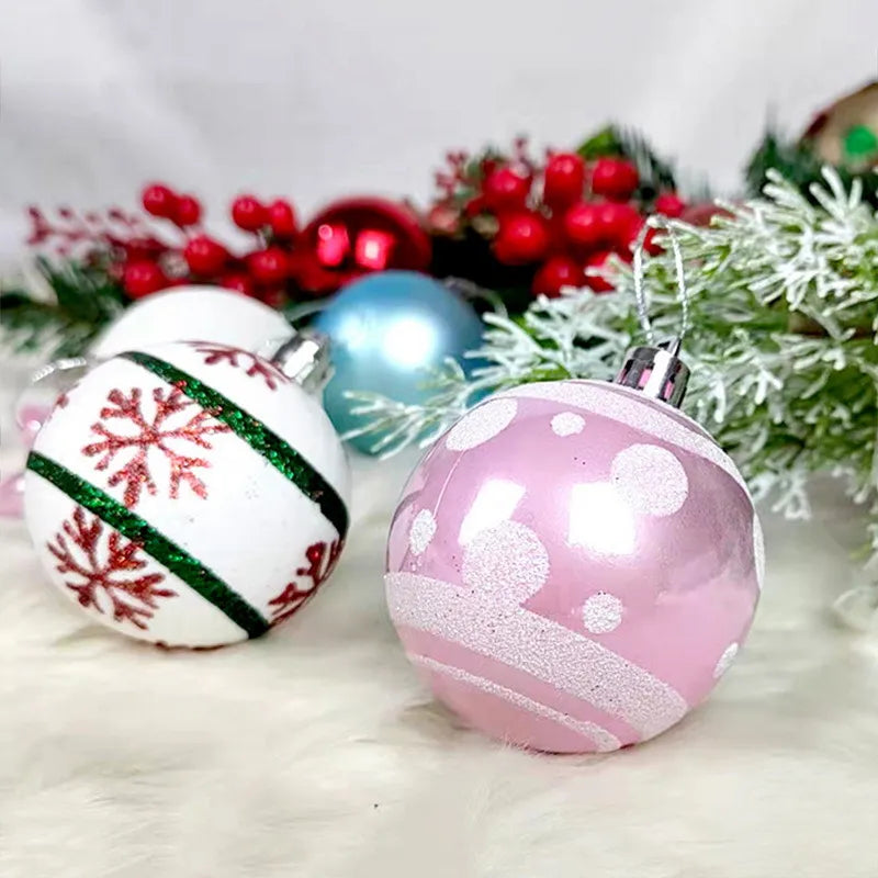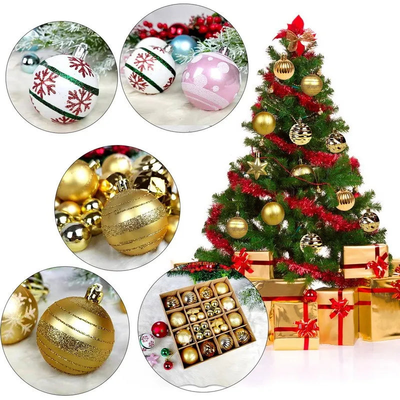 Festive Variety: This set includes an assortment of Christmas Ball Ornaments, each featuring its own unique design and color. From traditional shades of red and green to glittering metallics and intricate patterns, you'll have a range of options to match your holiday theme.