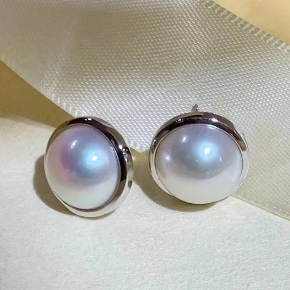 - Exquisite Mabe Pearls: These stud earrings feature 12-13mm natural freshwater Mabe pearls, known for their exceptional beauty and lustrous shine.