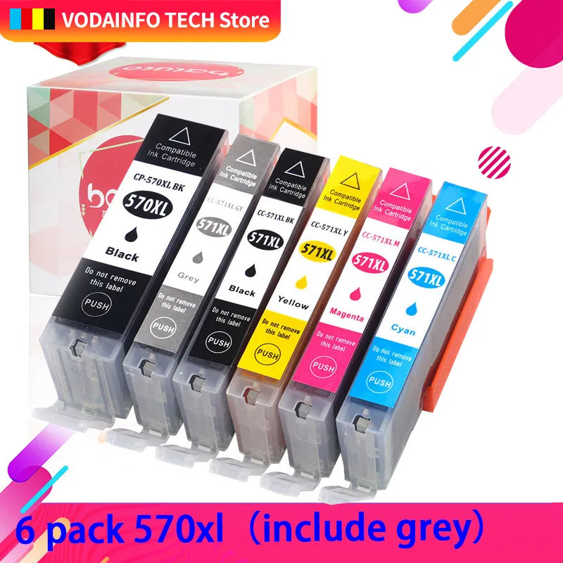 Experience high-quality printing with the Compatible Ink Cartridge for Canon PIXMA MG5750, MG5751, MG6851, MG6852, TS6050, TS5050, T5051 printers. This cartridge set includes PGI 570 and CLI 570 cartridges, ensuring vibrant and sharp printouts.