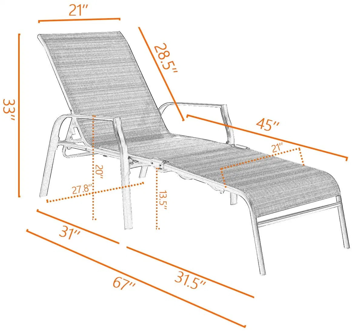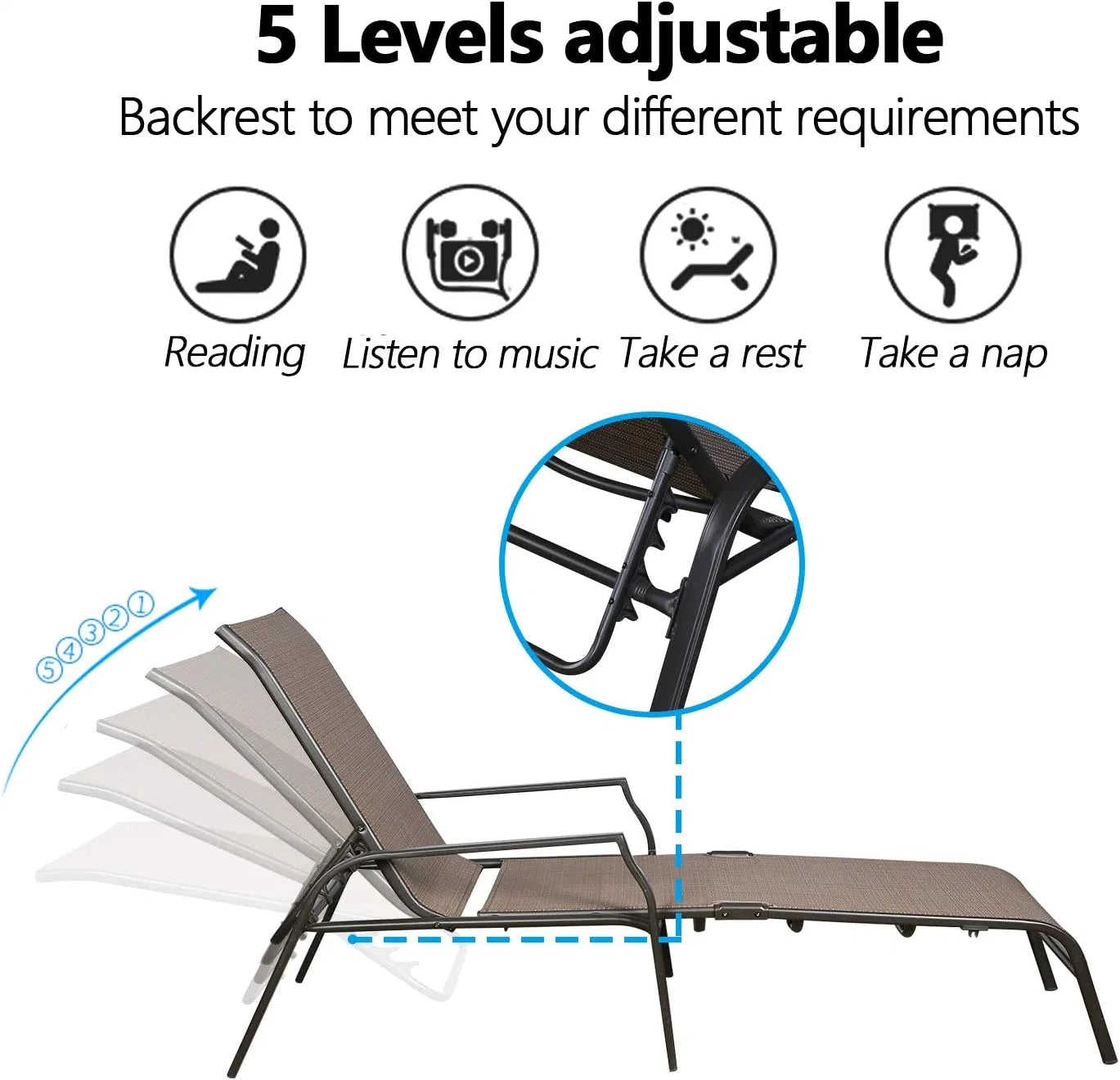 - Adjustable Reclining Positions: These chaise lounge chairs offer 5 adjustable positions, allowing you to find the perfect angle for relaxation. Whether you want to sit upright, recline partially, or lie completely flat, you can easily adjust the position to suit your comfort level.