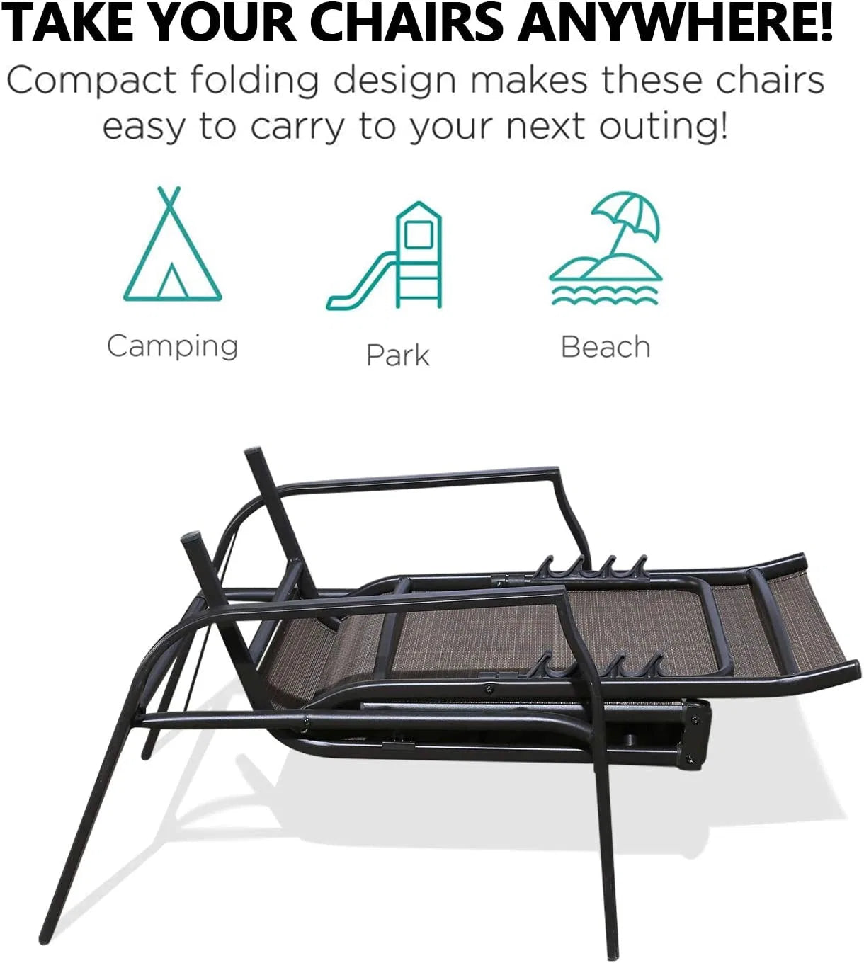 Unwind and relax in style with our Folding Sling Reclining Chaise Lounge Chairs. Whether you're at the beach, in your yard, by the pool, or on the patio, these chairs provide the perfect seating option for ultimate relaxation.