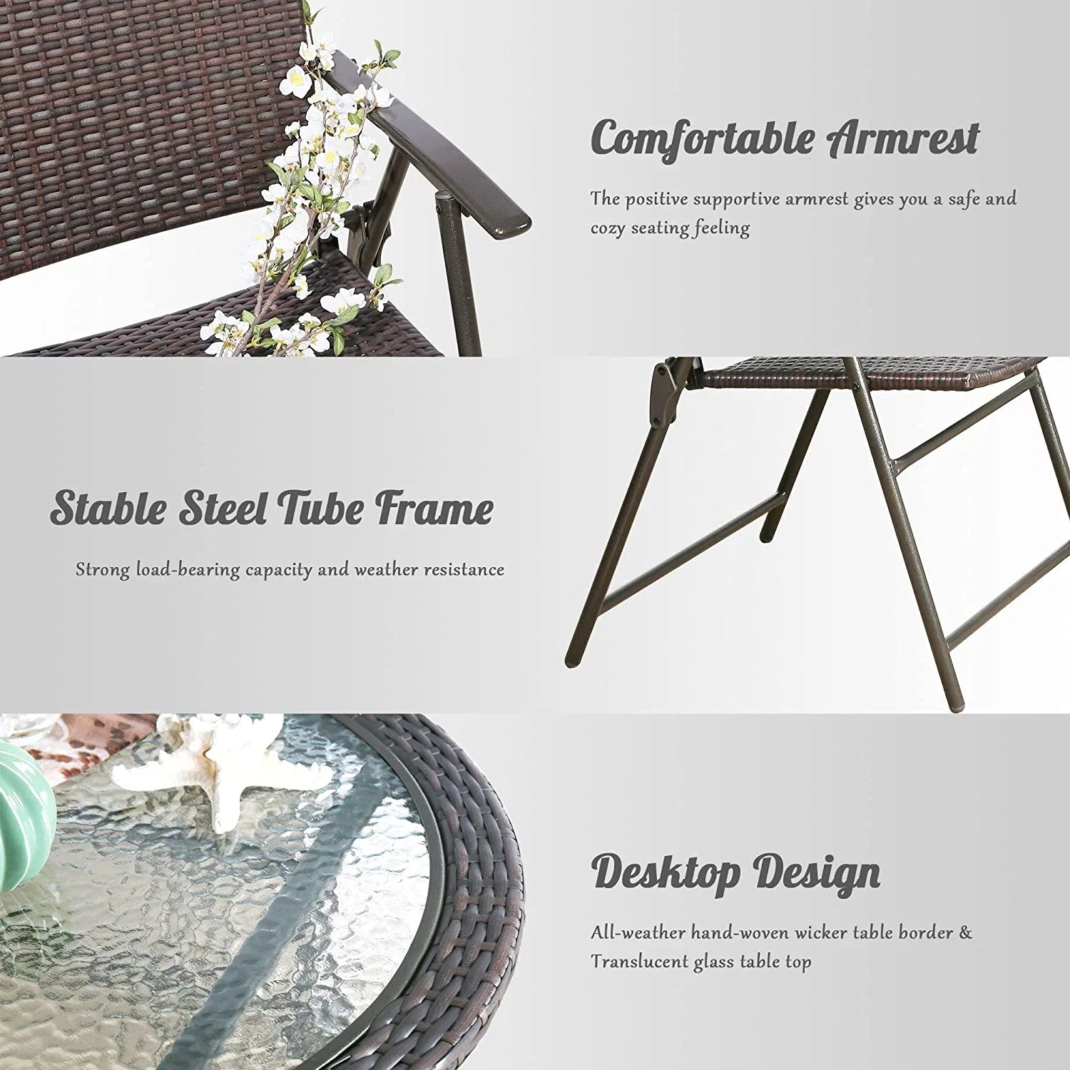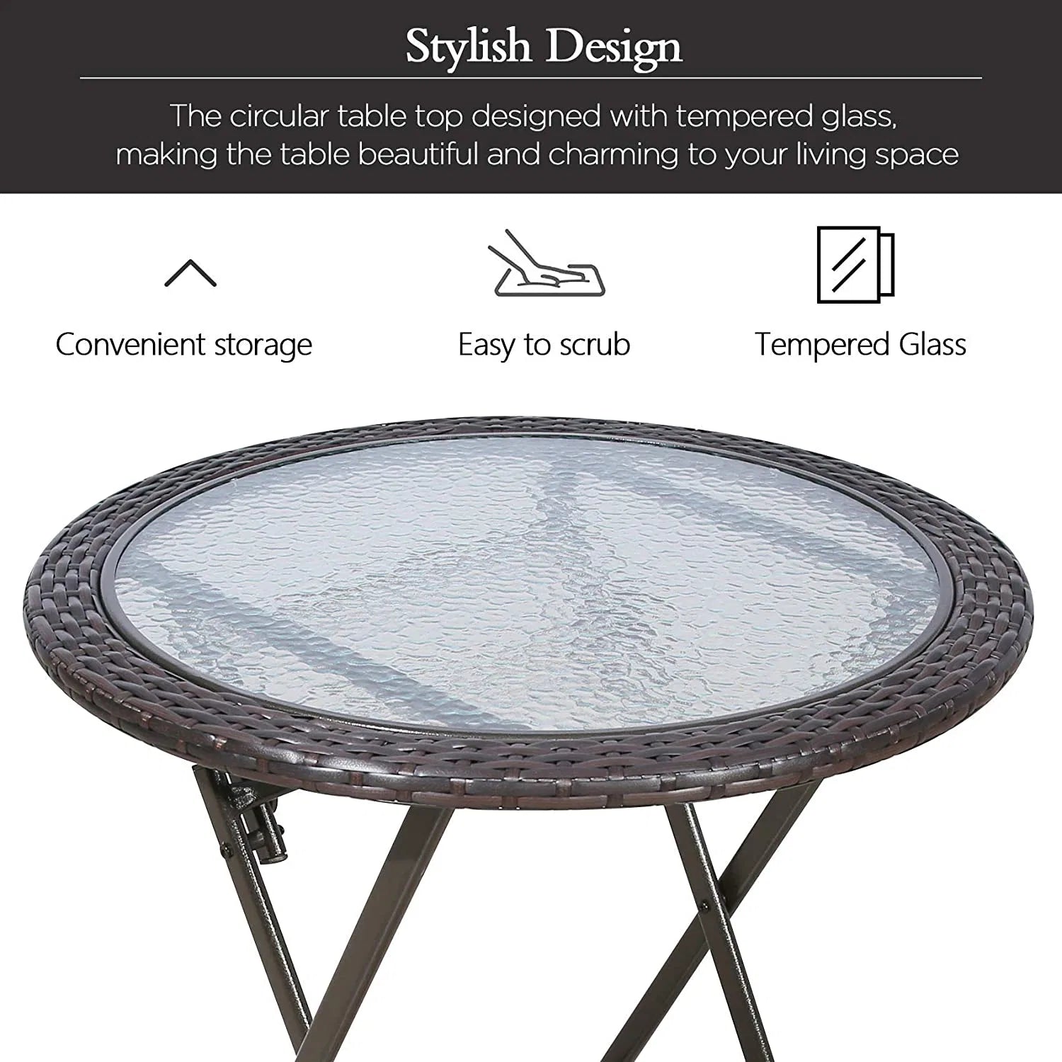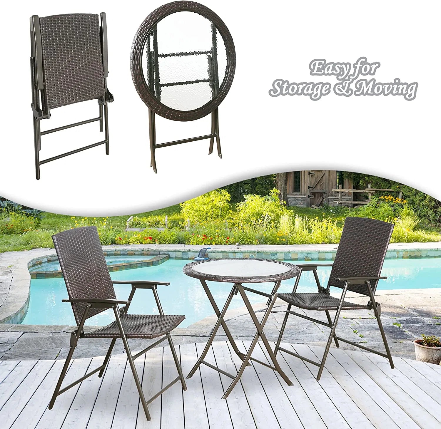 The folding feature allows for easy storage and portability, making it ideal for small spaces. Whether you're enjoying a morning cup of coffee or having a cozy dinner outdoors, this bistro set offers a perfect blend of style and functionality for your outdoor furniture needs.