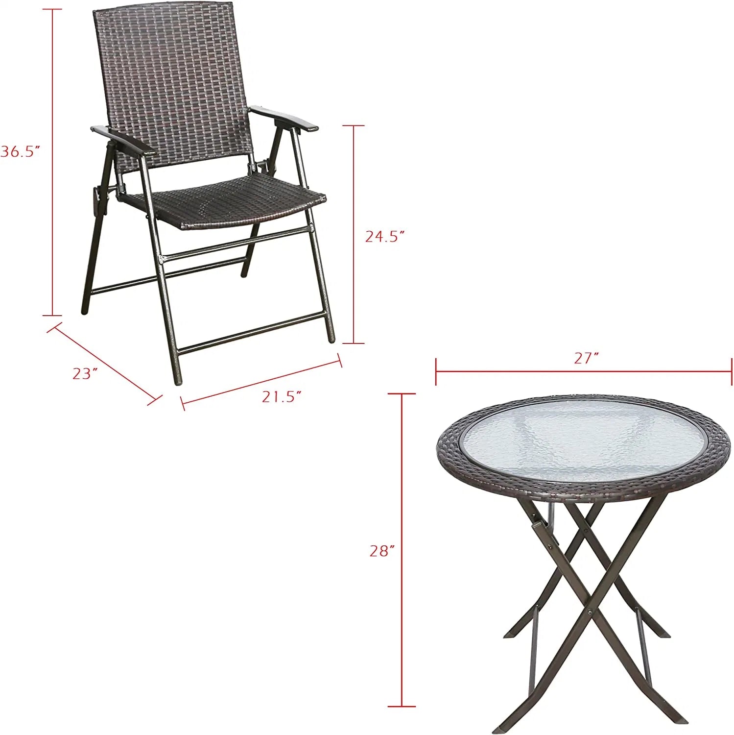 - Space-Saving Design: The compact size and folding feature of this 3-piece bistro set make it perfect for smaller outdoor spaces like balconies, patios, and gardens. It can easily be folded and stored when not in use, maximizing your space.