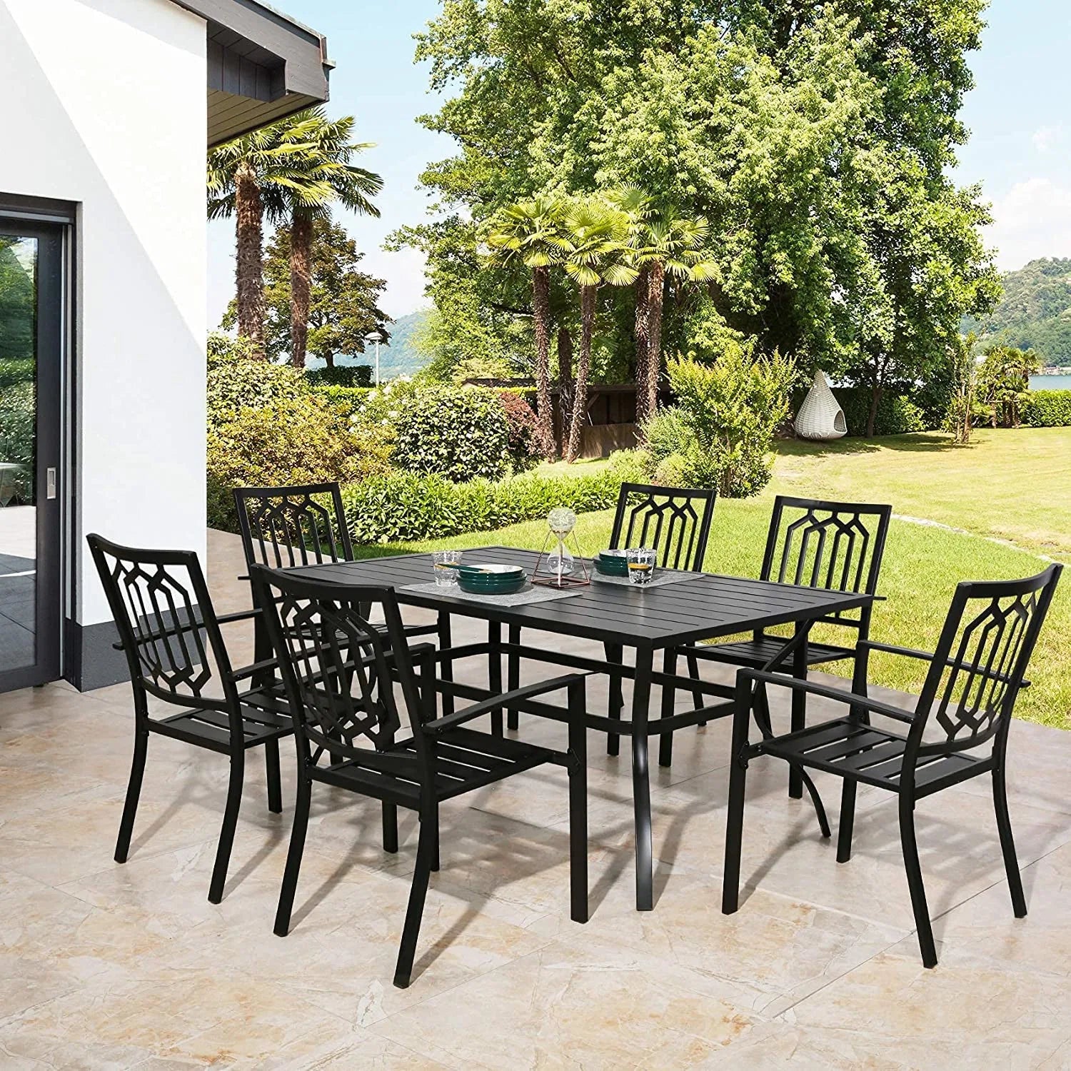 - Durable Construction: This outdoor metal slat dining table is built to last. The sturdy metal construction ensures durability and longevity, making it suitable for outdoor use in various weather conditions.