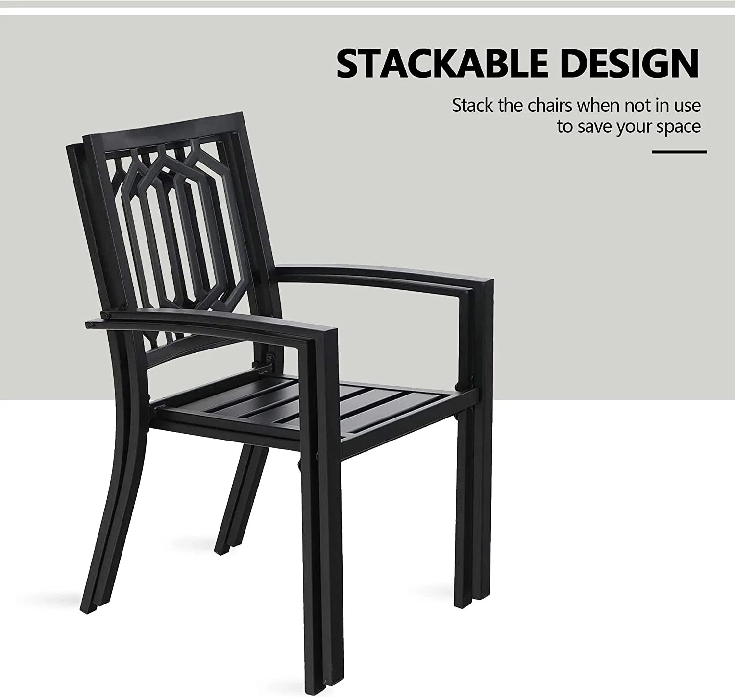 - Stackable Design: The chairs feature a convenient stackable design, allowing for easy storage and space-saving when not in use. Simply stack them together to maximize your storage space and keep your outdoor area tidy.