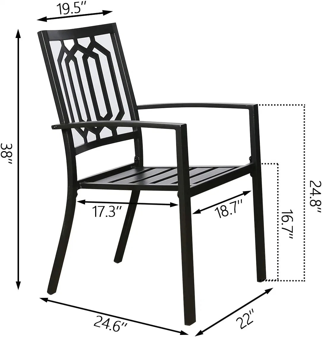 - Elegant and Timeless Style: With their sleek and elegant design, these chairs add a touch of effortless elegance to any outdoor dining setting. The classic metal frame and armrests enhance the visual appeal and bring a timeless charm to your garden, yard, or lawn.
