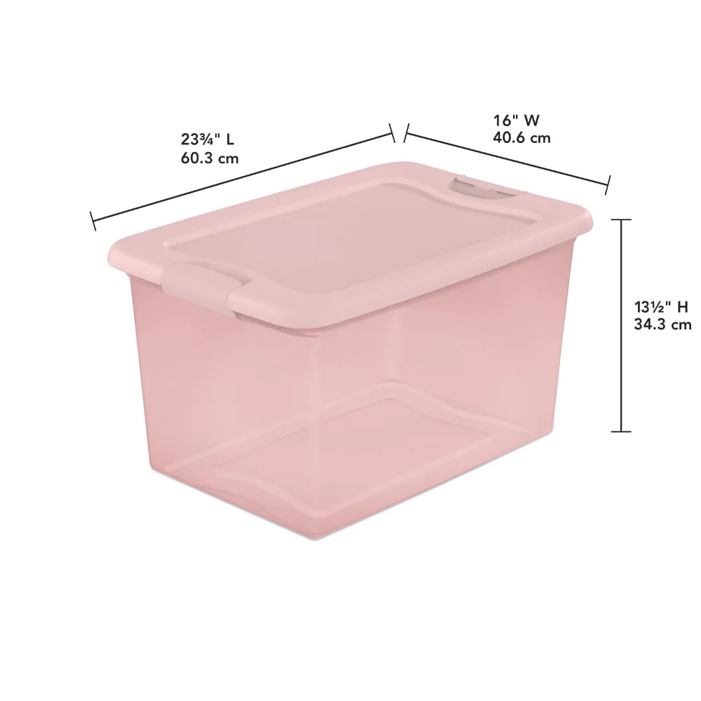 Adult Plastic 64 Qt. Latching Box Plastic, Blush Pink Tint, Set of 6: