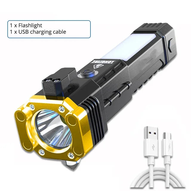 Product Name: USB Charging Super Bright LED Flashlight with Safety Hammer Side Light Torch Light Portable Lantern Outdoor Adventure